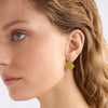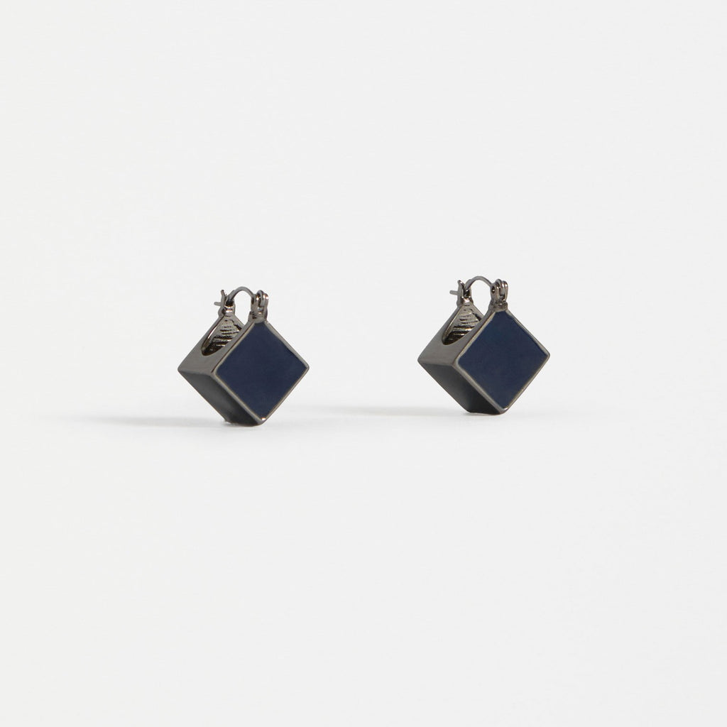 The Elta Mini Hoop Earring is a small lightweight hoop design comprised of simple cubic shape with a closed hinged backing. Finished with a coloured enamel coating and brushed metal base, this lightweight and minimalist style will give a subtle touch of colour and character to your everyday outfits.