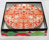 A strong floral print in vibrant orange and white on porcelain is the perfect way to spice up your next dinner party.